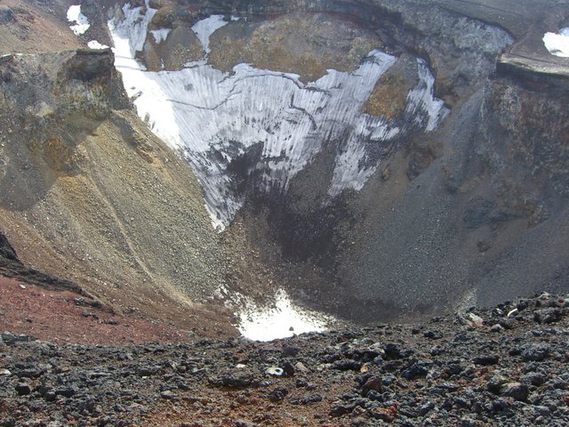 | 夏でも火口底には残雪が |