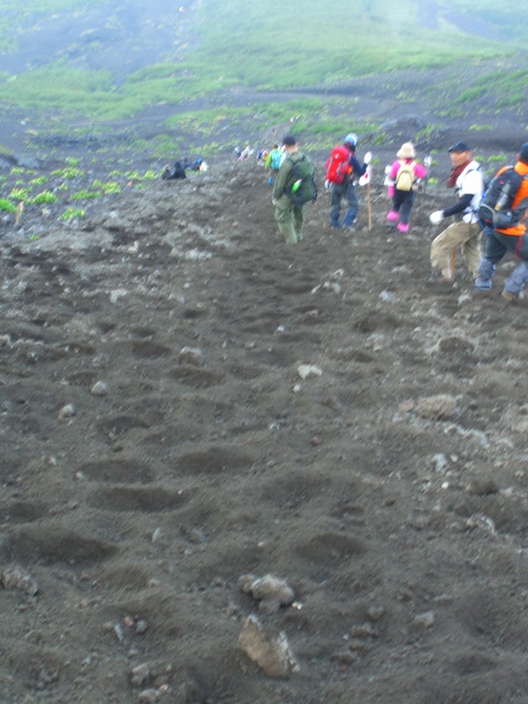 | 須走ルートの下山道は砂利道の連続、「砂走り」 |